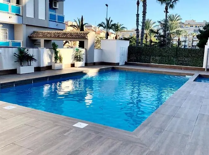 Med en udendørs pool, en solterrasse og et vandland tilbyder Leonarda ferielejlighed overnatning i Torrevieja. Indkvarteringen ligger 5 minutters gågang fra Playa Canina.